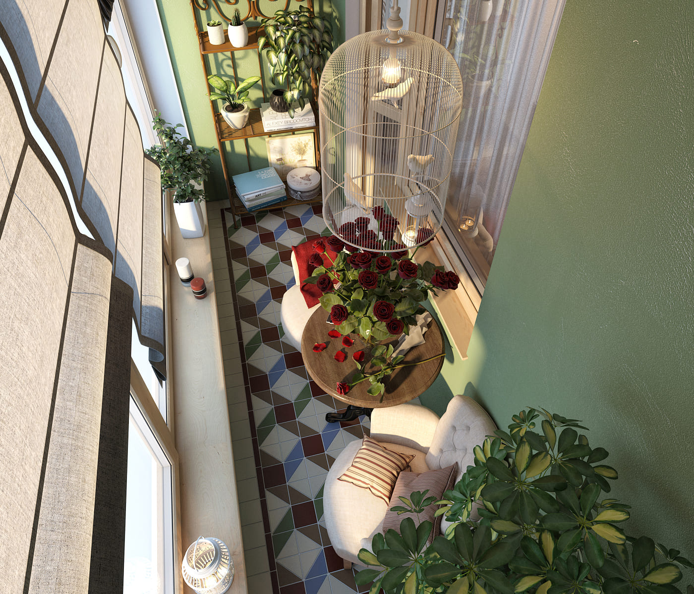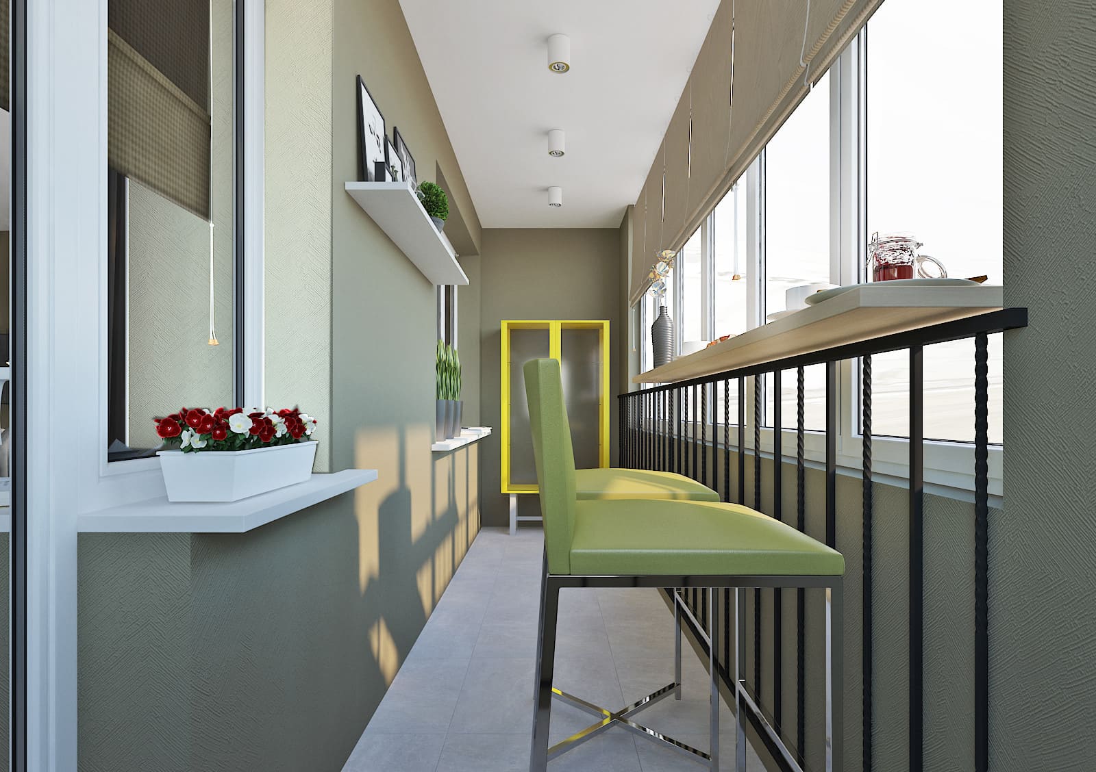 Дизайн балкона в салатовых тонах