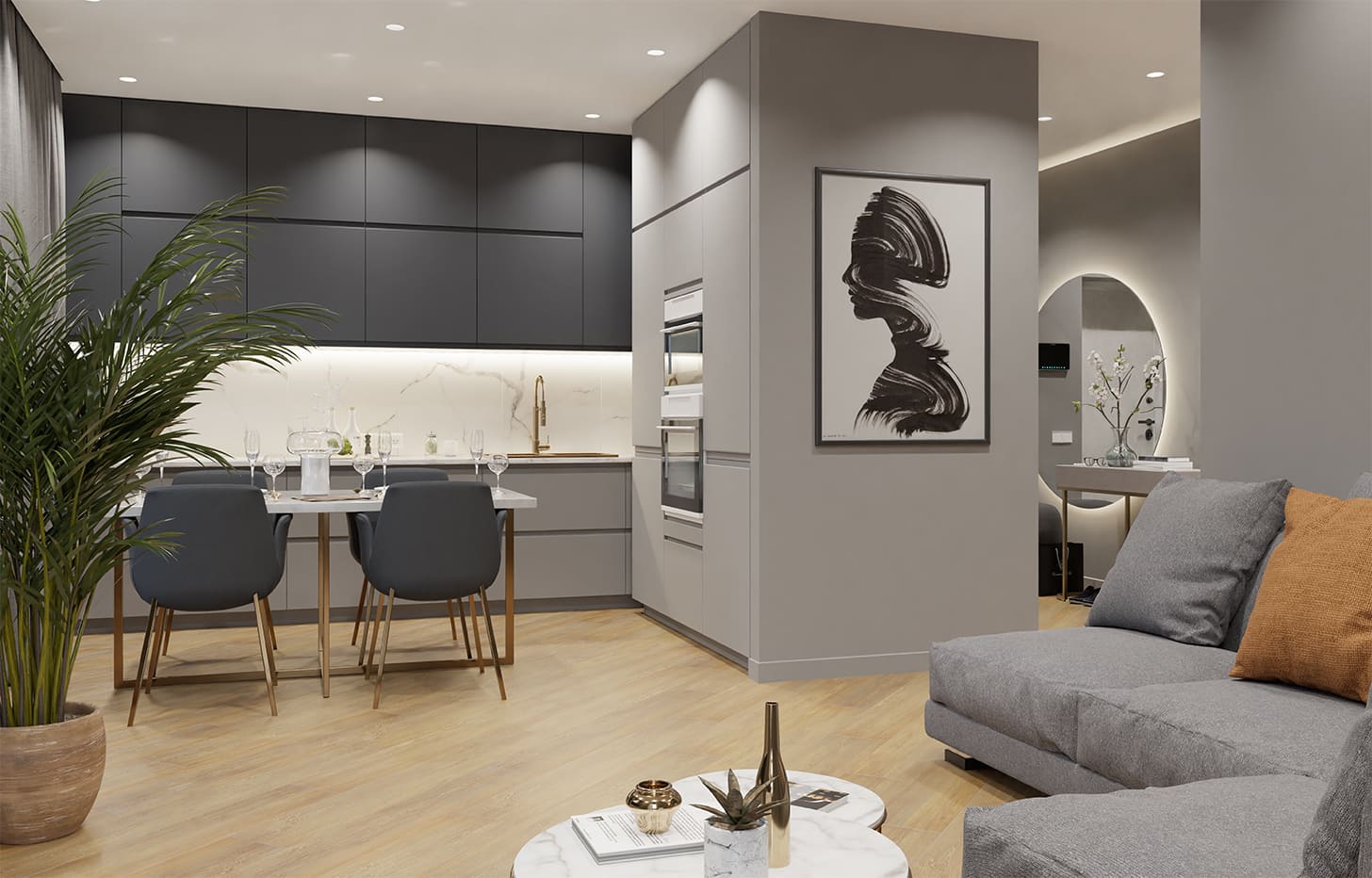 Материал абсолютно невосприимчив к воде и влаге и может монтироваться по всей площади квартиры. Допустима укладка под тяжелую мебель без потери гарантии. Рекомендуется под использования с теплым полом и напольными конвекторами.